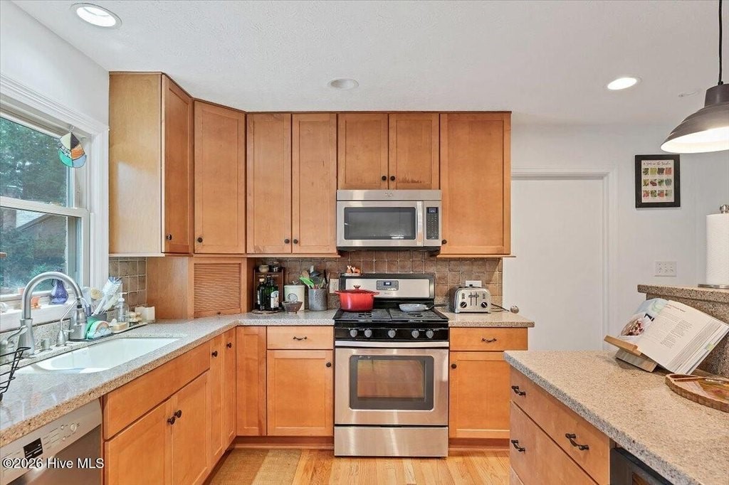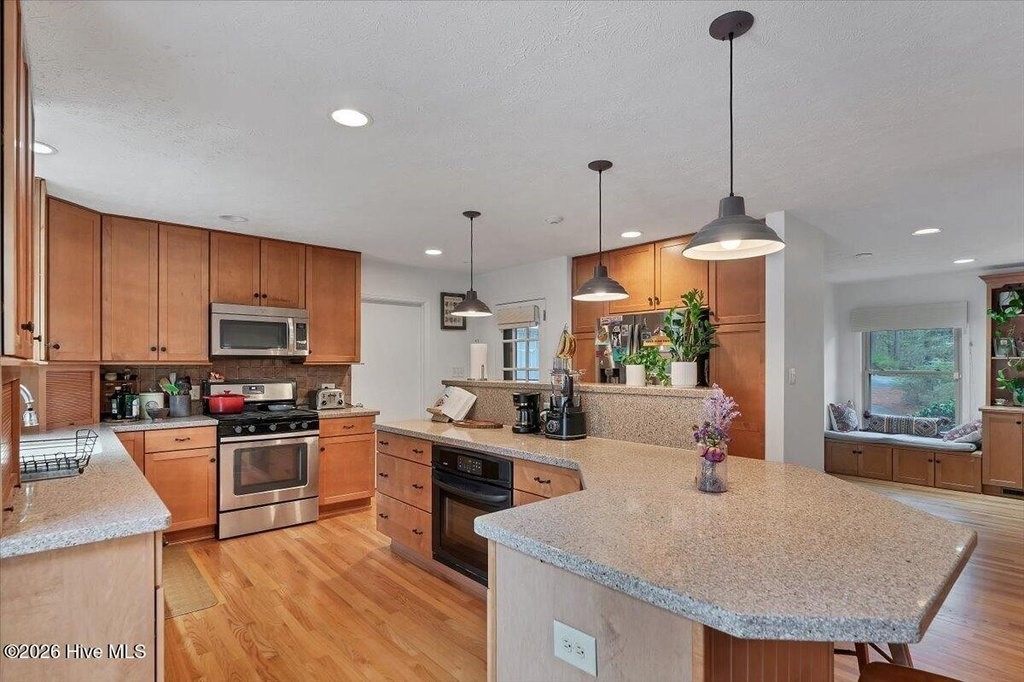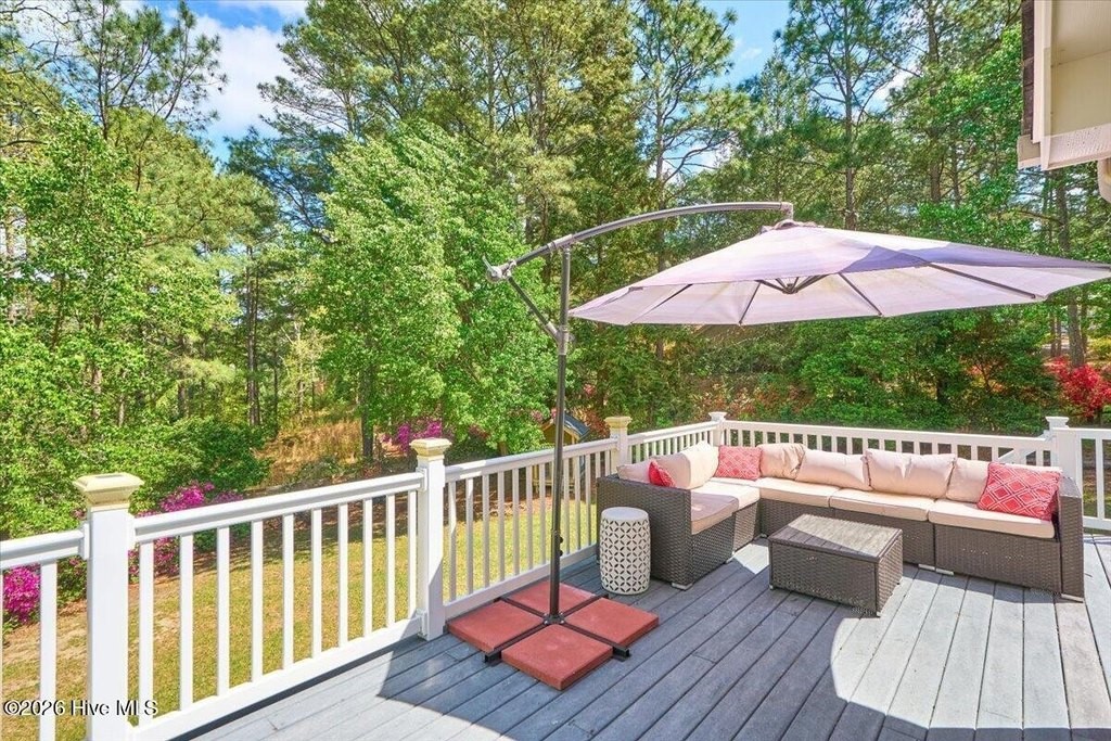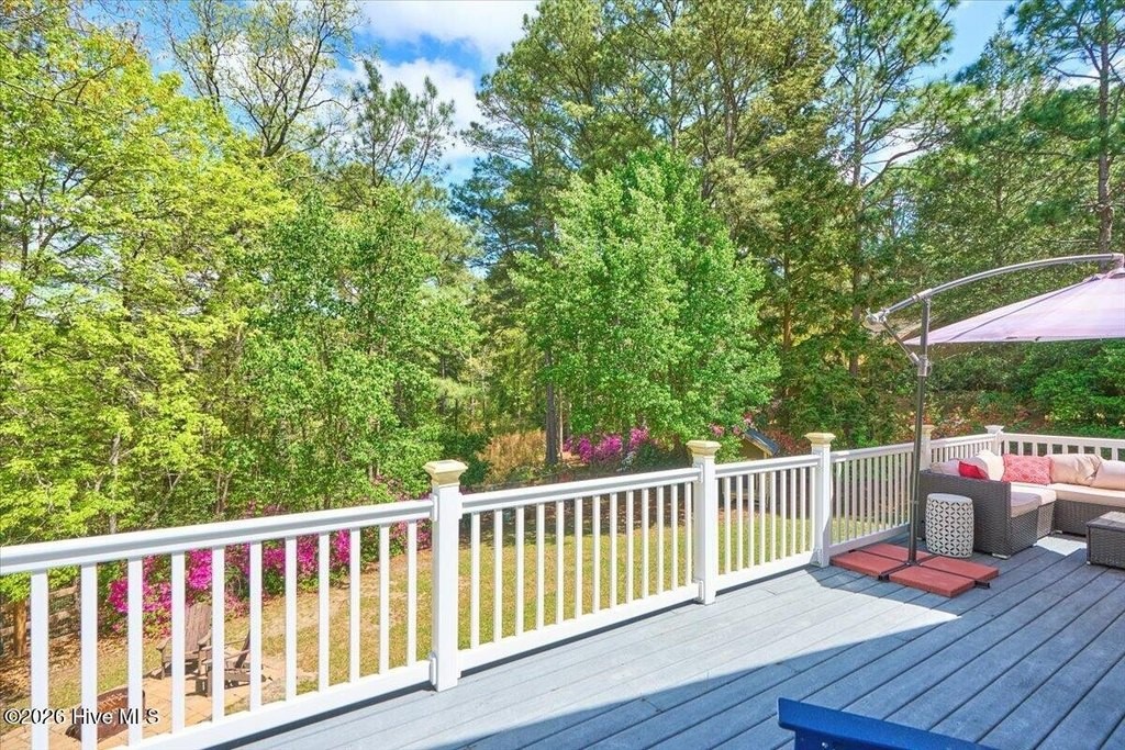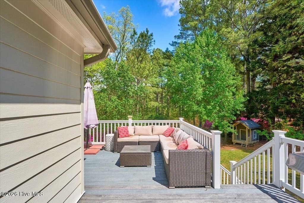 Tucked away on a private lot framed by towering pines and bursts of blooming azaleas, this two-level home offers the kind of peaceful retreat that's increasingly hard to find -- all while sitting just minutes from the charm of Southern Pines, the world-class golf of Pinehurst, and the convenience of Fort Bragg and Camp Mackall. From the moment you arrive, the natural beauty of the property sets the tone. A fully fenced backyard provides privacy and room to roam, while a beautiful back deck invites you to linger over morning coffee or evening gatherings surrounded by the sights and sounds of nature. Inside, the main level delivers comfortable, well-appointed living. The kitchen is a true standout -- cabinetry stretches all the way to the ceiling, granite countertops provide ample workspace, and a gas stove with double oven makes entertaining a pleasure. A newer refrigerator rounds out this thoughtfully equipped space. The main level also offers a generous pantry, dedicated laundry, and flows naturally through the living and dining areas into a sun-drenched sunroom -- the perfect spot to take in the lush surroundings year round. The primary suite is your private sanctuary, complete with a stunning clawfoot tub and separate shower. A second bedroom and full bath complete the main floor. Head downstairs and discover a walkout lower level that truly expands your living options. Engineered hardwood floors, classic paneling, and a light-filled four-seasons room create a warm and welcoming atmosphere. A spacious family room, third bedroom, and a large recreation room offer incredible flexibility -- whether you need a home gym, hobby space, playroom, or all three. A lower-level bathroom features charming vintage tile and a new countertop, ready for your personal finishing touches. Additional highlights include a dual-zoned HVAC system (replaced 2018), new gutters, a leased propane tank through Amerigas, and a storage shed set on a concrete slab. Every detail has been considered to make this home as functional as it is inviting. Whether you're seeking privacy, space, or easy access to everything the Sandhills has to offer, 852 Barber Road checks every box.